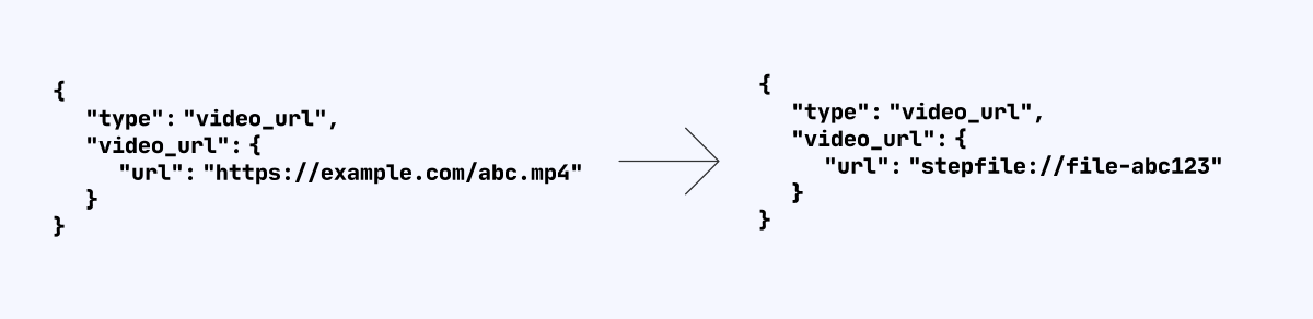 你可以调用上传文件 API,并传入文件,选择 purpose 为 storage,上传完成后所获取的 File ID 则可以在对话过程中使用。在拿到 File ID 后,你需要在 File ID 前拼上 stepfile://,用于标注这个图片从阶跃星辰文件服务中获取,后续模型在推进推理时,将会从阶跃星辰文件存储服务上获取文件,从而降低下载文件所需的时间,提升整体推理的时延。